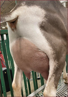 stands on very correct feet and legs and has a high, wide rear udder