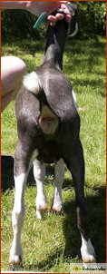 Cookie resembles her dam very much only in a baby package. She's long,