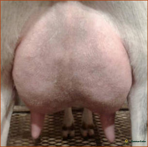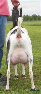 Snickers injured her foot badly last summer (she ripped half of one hoof off and has has to regrow it completely) so it slowed her down. She was unable to attend any shows due to her injury but she continued to milk well throughout her ordeal. She was still limping significantly at appraisal and was NIC for this year.