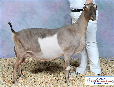 What a stunning kid Snickers has turned out to be. Sammy was so excited when CitCat gave her triplets for the second year in a row and she picked this little doe as her "keeper kid". And Snickers sure didn't disappoint her.  She was 1X 1st place and 2X 2nd place Senior kid at the Iowa Spring Classic as well as 1X GCH and 2X RGCH. She then followed it up by placing 3rd in a large class of senior kids at the ADGA National Show.
